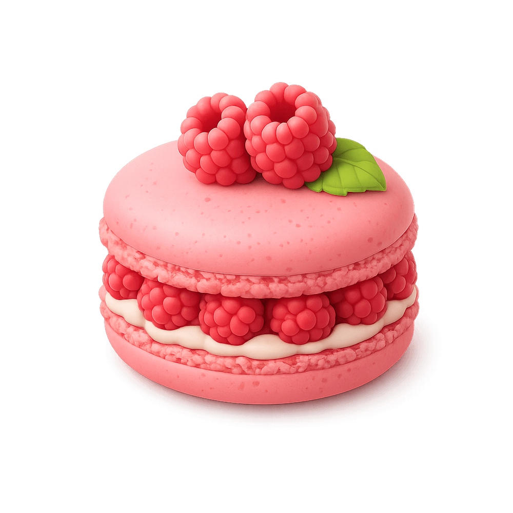A delicate French pastry made with almond meringue shells and a sweet-tart raspberry filling. Known for its vibrant color and crisp, chewy texture, the raspberry macaron is a popular dessert enjoyed worldwide.