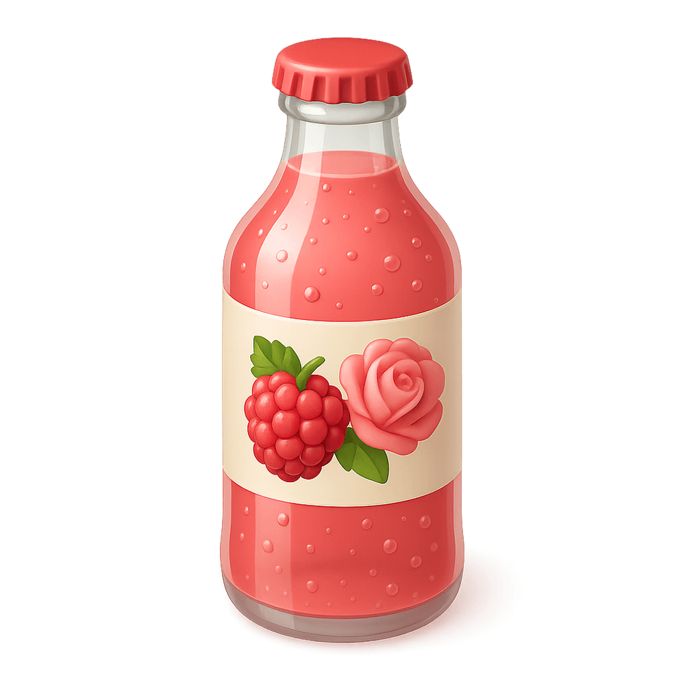 A sparkling beverage that combines the sweet-tart flavor of raspberries with delicate floral notes of rose. Perfect for a refreshing treat or a unique drink option at gatherings.