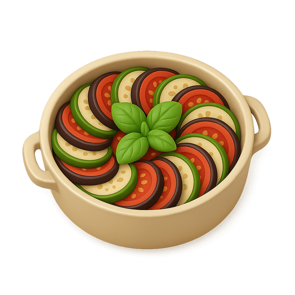 Ratatouille is a traditional French Provençal stewed vegetable dish, typically made with eggplant, zucchini, peppers, tomatoes, onions, and herbs. It is known for its vibrant flavors and colorful presentation, often served as a main course or side dish.