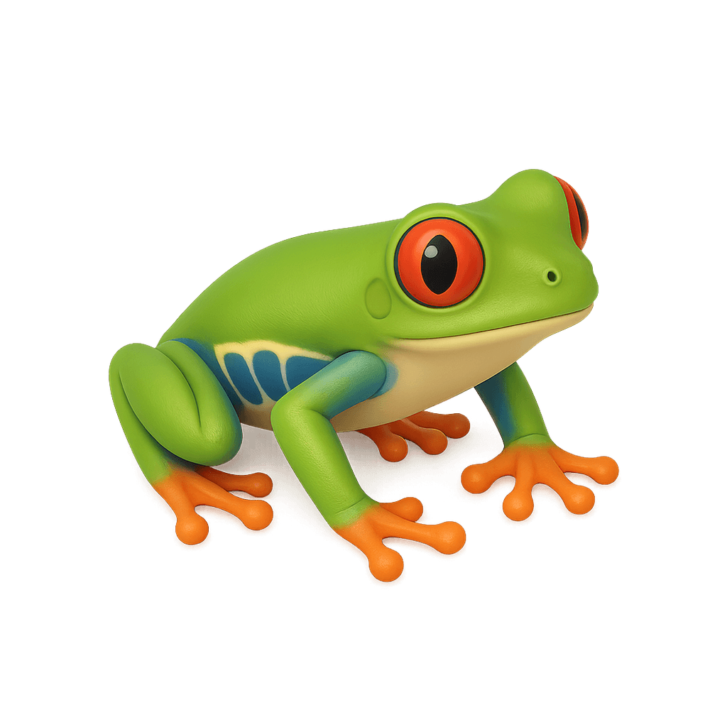 The Red-eyed Tree Frog is a vibrant, nocturnal amphibian native to Central and South American rainforests. Known for its striking red eyes and bright green body, it uses camouflage and sudden flashes of color to evade predators. This species is an iconic example of rainforest biodiversity and is often found near wetlands and freshwater sources.