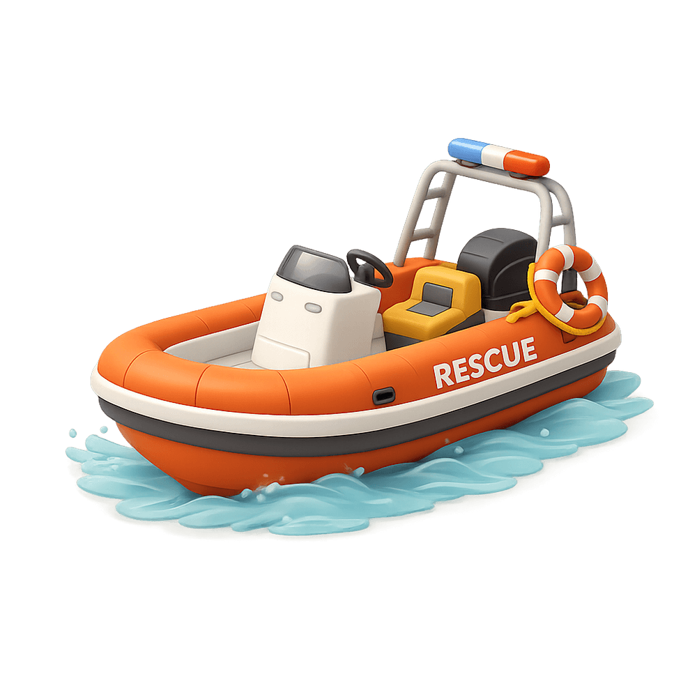 A high-speed watercraft designed for rapid response and rescue operations in aquatic environments. Equipped with powerful jet propulsion, it is used by emergency teams to reach and assist people in distress on water.