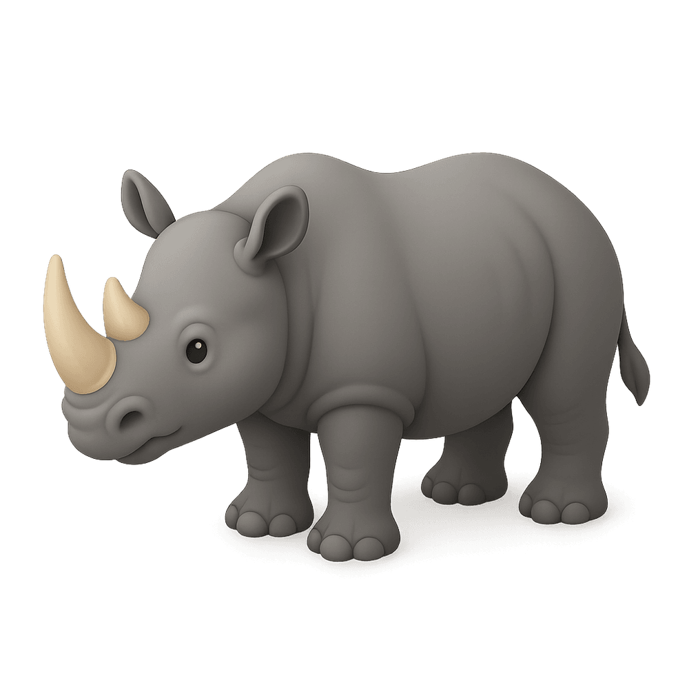 A large, thick-skinned herbivorous mammal native to Africa and Asia, known for its distinctive horn(s) on the snout. Rhinoceroses are endangered due to habitat loss and poaching.