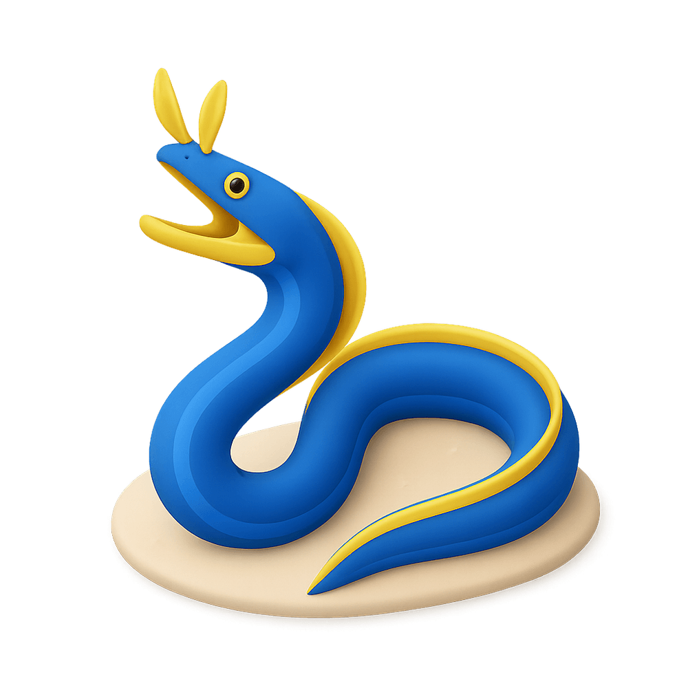 The Ribbon Eel is a strikingly colorful marine fish known for its long, ribbon-like body and vibrant blue, yellow, or black coloration. Found in Indo-Pacific coral reefs, it is famous for its dramatic appearance and unique life cycle, changing color and sex as it matures.