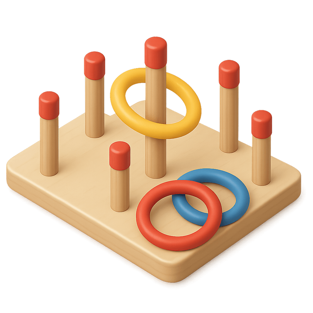 Ring Toss is a classic game where players throw rings, aiming to land them over pegs or targets. Popular at carnivals, parties, and family gatherings, it tests accuracy and hand-eye coordination while providing fun for all ages.
