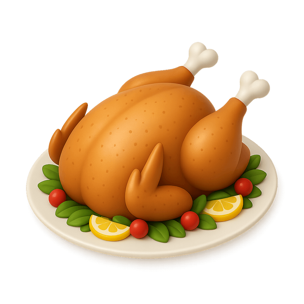 A whole turkey seasoned and slow-roasted until golden brown, often served as a centerpiece dish during festive gatherings and holidays.