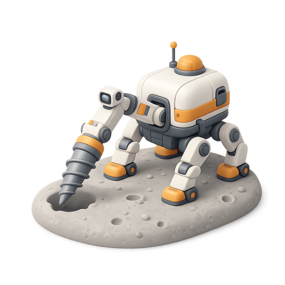 A Robotic Lunar Drill is an advanced, automated device designed to penetrate the surface of the Moon for scientific exploration, resource extraction, or construction. It operates remotely or autonomously in harsh lunar environments, enabling the collection of subsurface samples and data crucial for space missions.