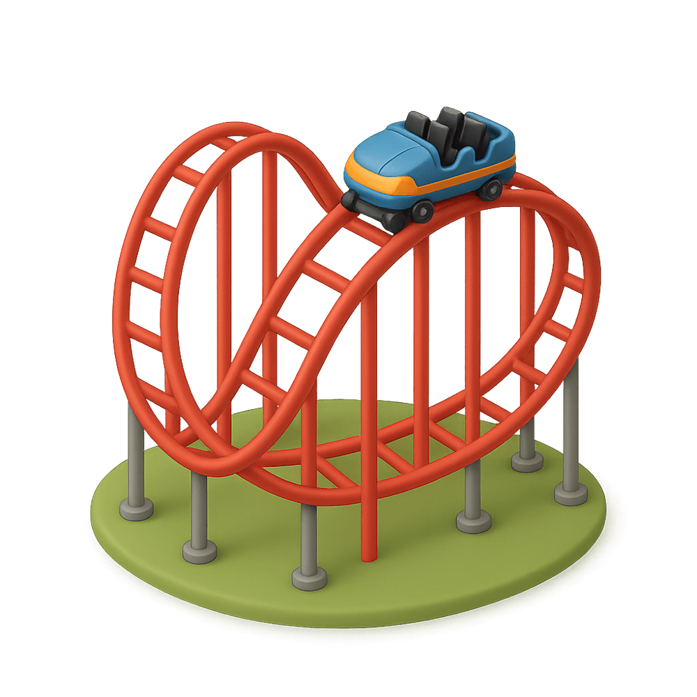 A roller coaster is a thrilling amusement ride featuring a track with tight turns, steep slopes, and sudden drops, designed for entertainment in theme parks and fairs.