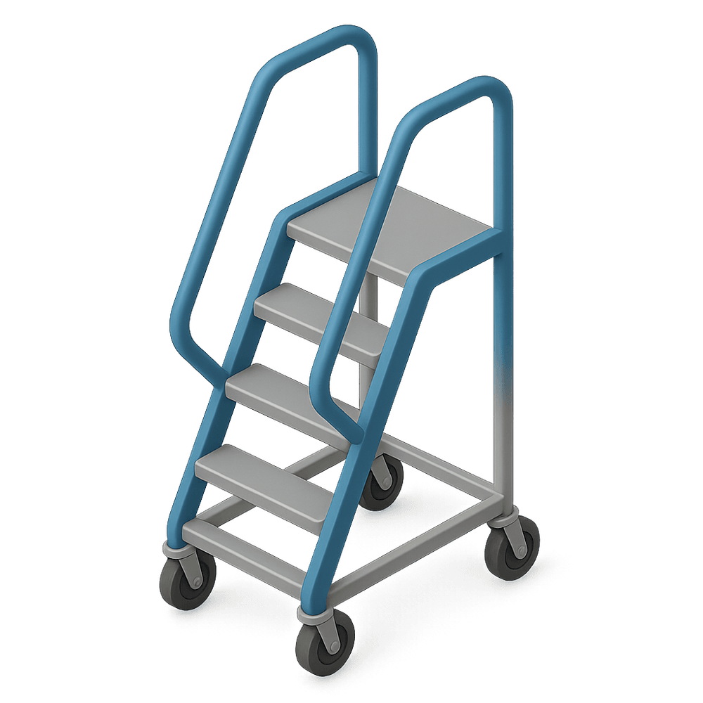 A rolling ladder is a mobile ladder equipped with wheels or casters, designed for safe and easy access to high shelves or elevated workspaces in industrial, warehouse, or library settings. It provides stability and mobility for workers needing to reach items stored at height.