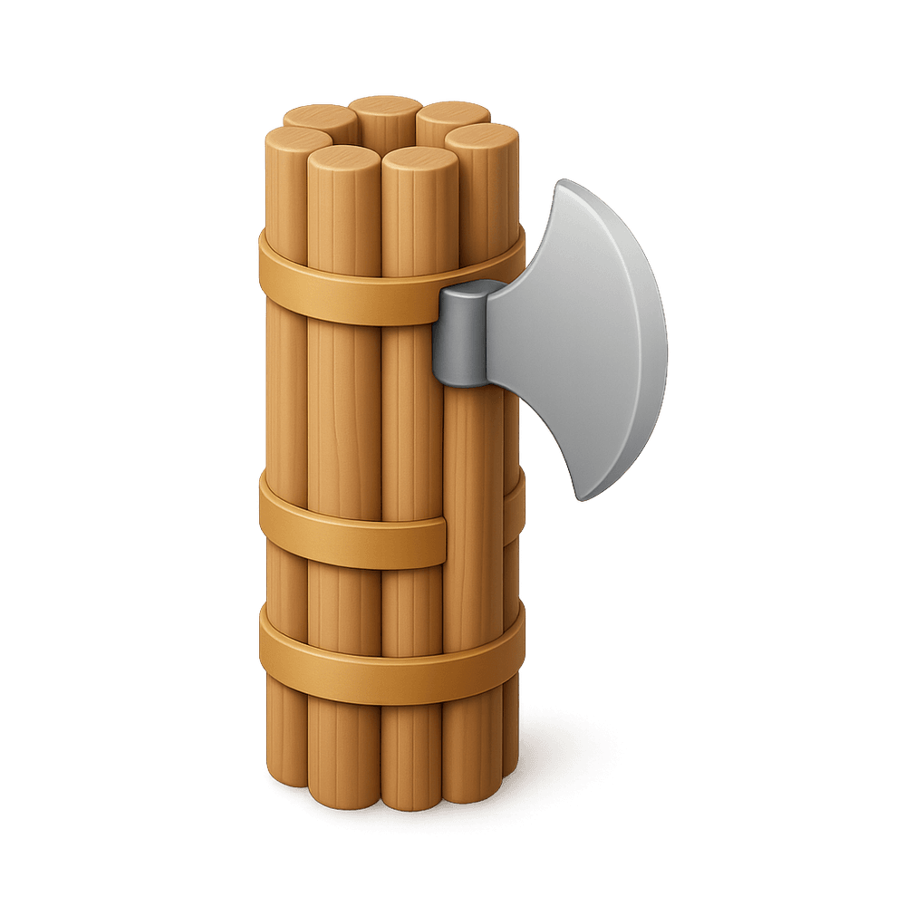 A Roman fasces is a bundle of wooden rods, often including an axe, that was carried by lictors in ancient Rome as a symbol of authority and power. It represented unity and the magistrate's power to punish or execute.
