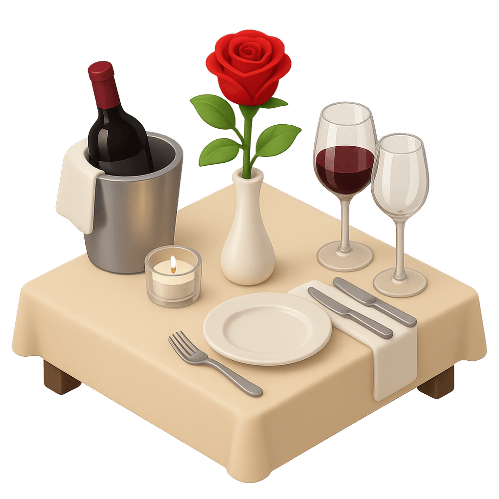 A Romantic Dinner is an intimate event typically shared by couples, featuring a special meal in a cozy or elegant setting, often enhanced by candlelight, music, and thoughtful details to create a memorable and affectionate atmosphere.