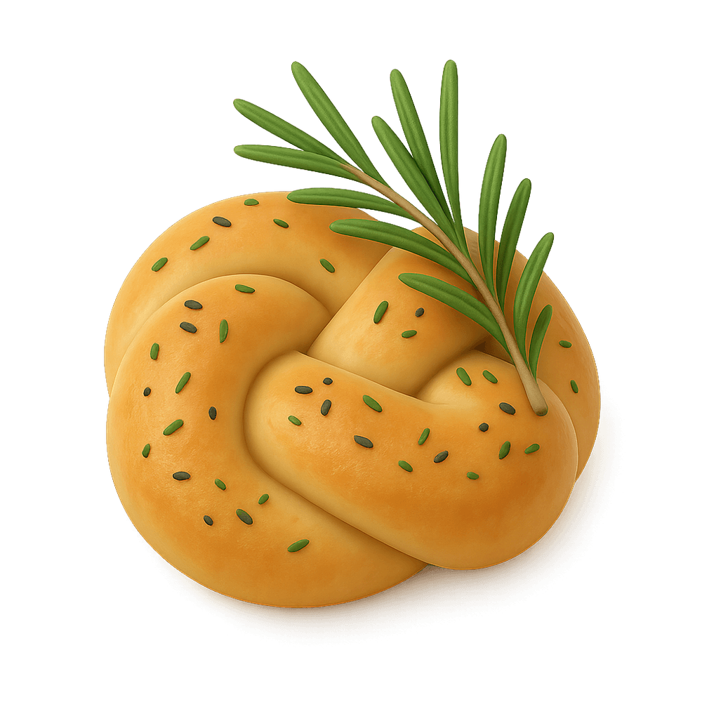 A soft, aromatic bread knot infused with rosemary and olive oil, offering a savory twist on classic focaccia. Perfect as an appetizer or side dish.