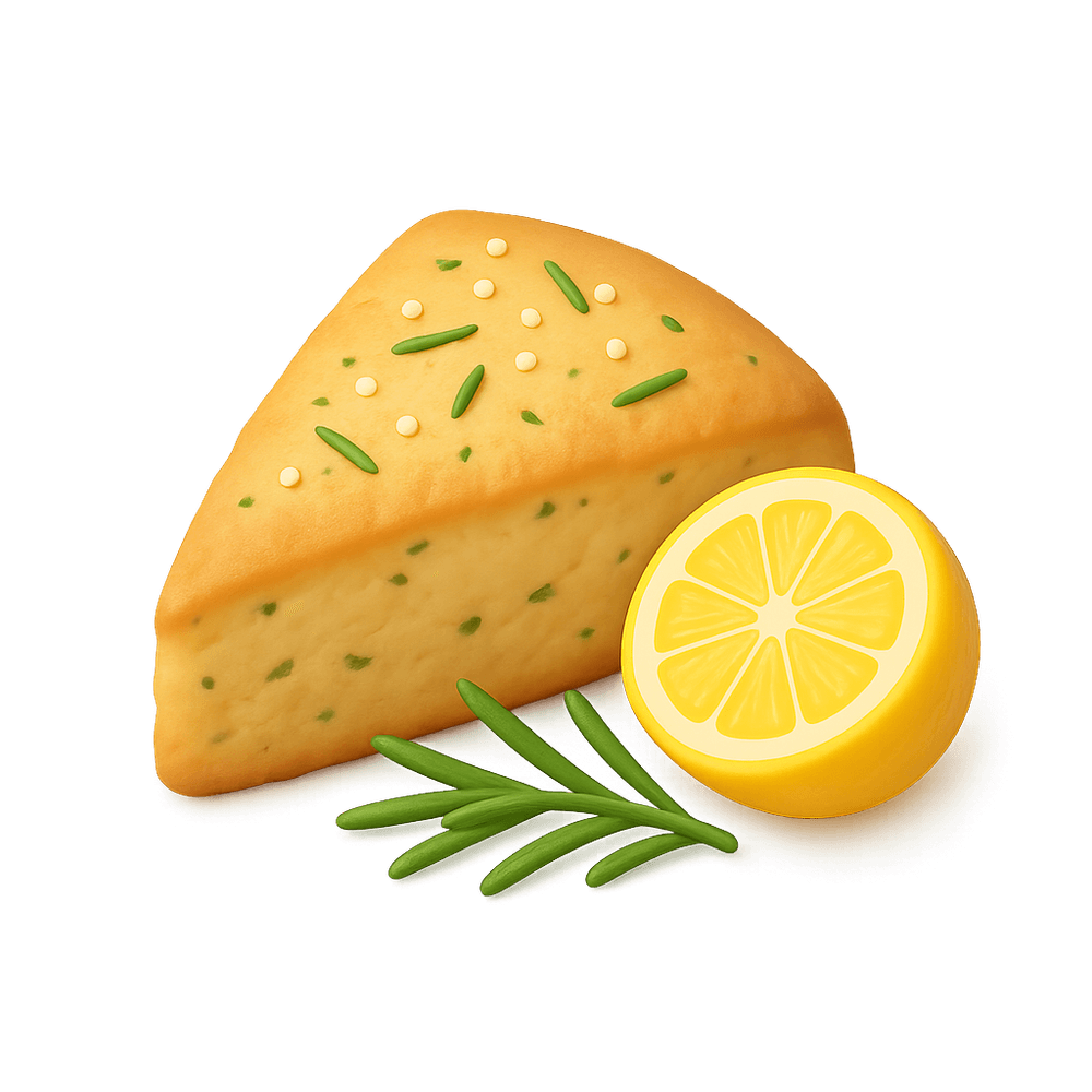 A tender, buttery scone infused with fragrant rosemary and zesty lemon, offering a delightful balance of savory and citrus flavors. Perfect for breakfast, brunch, or an afternoon snack.