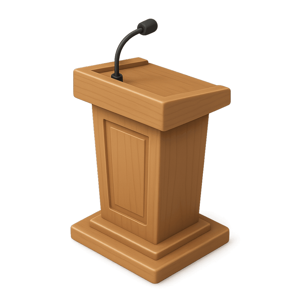 A rostrum is a raised platform or stage used for public speaking, performances, or presentations, often found in auditoriums, halls, or outdoor venues.
