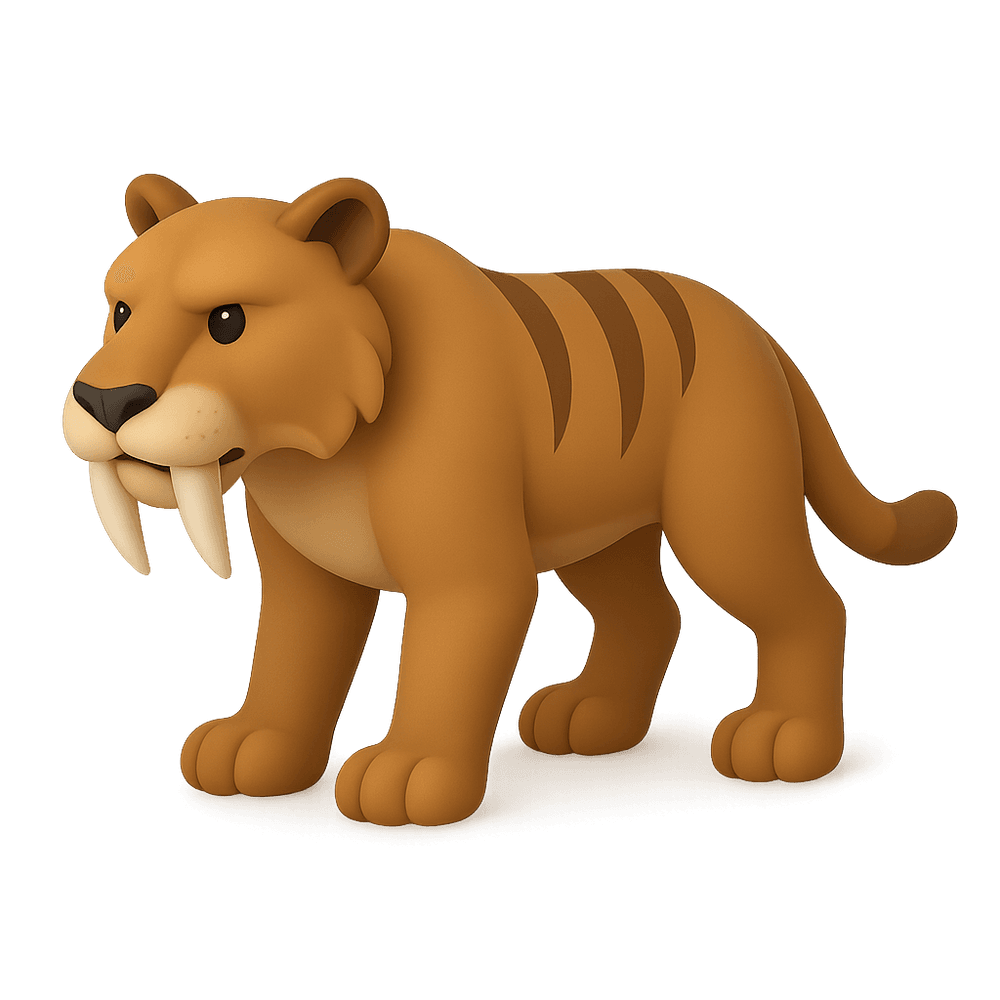 The Sabertooth Tiger, also known as Smilodon, was a prehistoric predator famous for its long, curved canine teeth. It lived during the Ice Age and is now extinct.