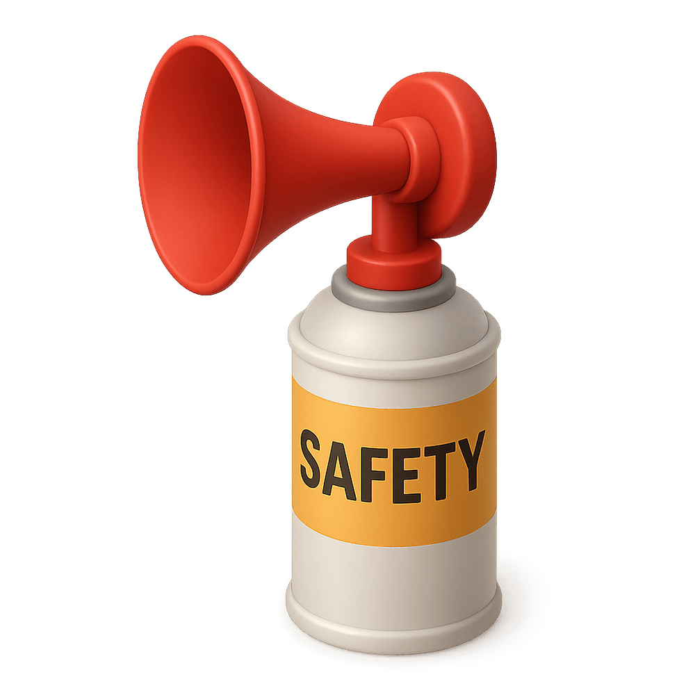 A Safety Air Horn is a portable, hand-held device that emits a loud, attention-grabbing sound to alert people in emergency situations or signal for help in industrial and work environments.