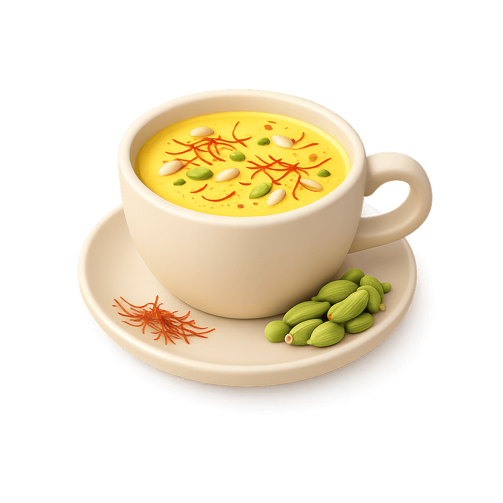 Saffron Milk is a traditional beverage made by infusing milk with saffron threads, often sweetened and sometimes flavored with cardamom or nuts. Known for its rich golden color and aromatic flavor, it is popular in South Asian and Middle Eastern cuisines, especially during festivals and special occasions.
