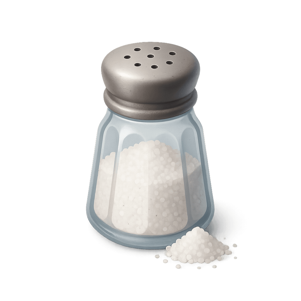 A common mineral used to season and preserve food. Salt is essential in cooking and is found in nearly every kitchen around the world.