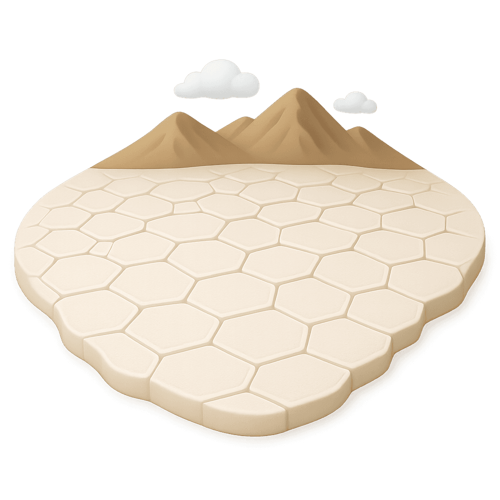 A salt flat is a large, flat expanse of ground covered with salt and other minerals, usually left behind by evaporated bodies of water. These striking landscapes are often found in arid regions and are known for their unique, reflective surfaces and extreme environments.