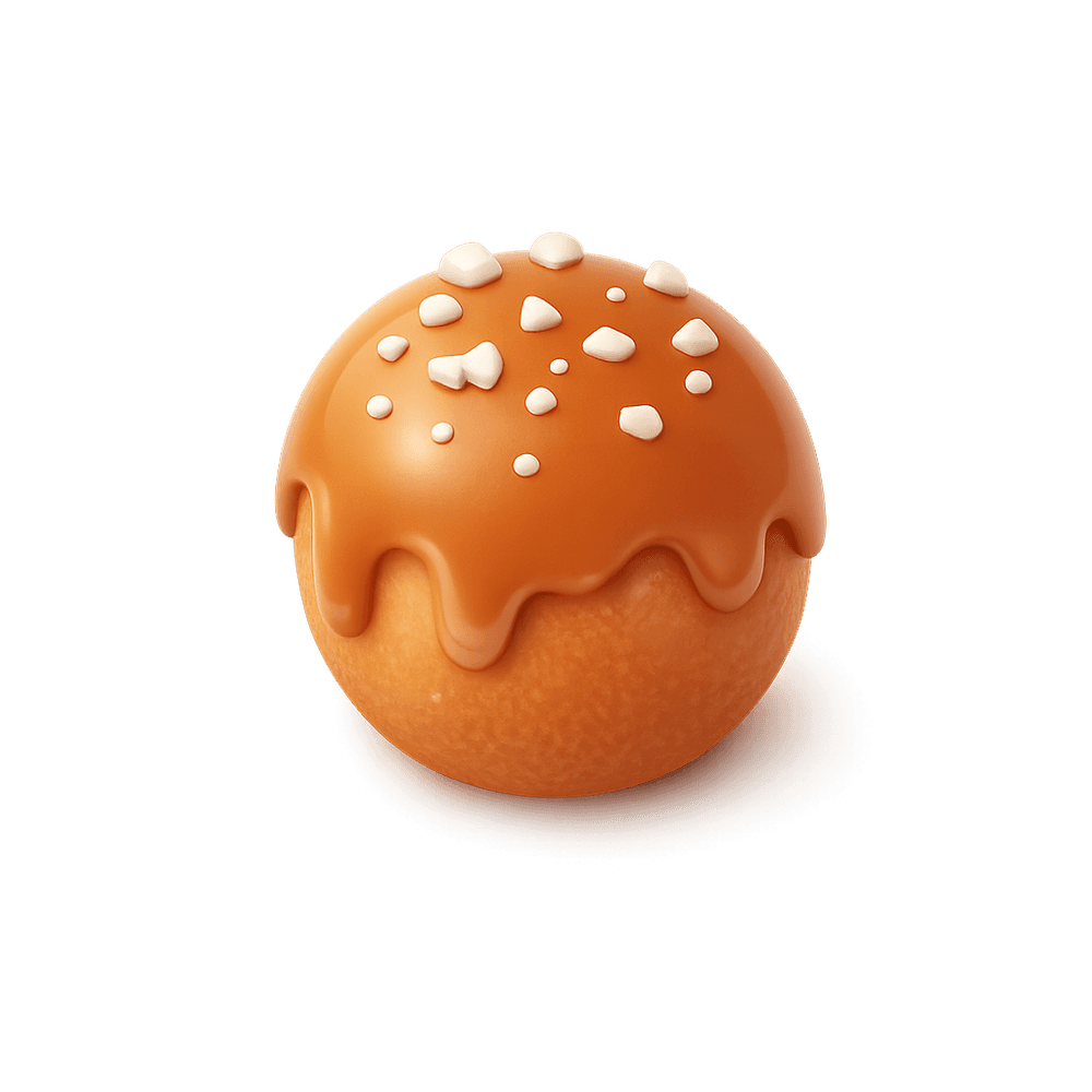 A bite-sized donut treat coated in rich salted caramel glaze, offering a perfect balance of sweet and salty flavors. Ideal for snacking or dessert.