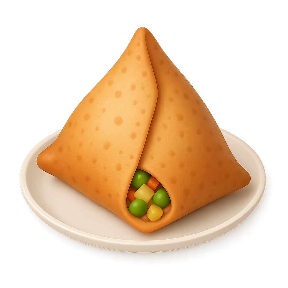 A samosa is a popular deep-fried snack originating from South Asia, typically filled with spiced potatoes, peas, and sometimes meat, wrapped in a crispy pastry shell. It is commonly enjoyed as street food or an appetizer.