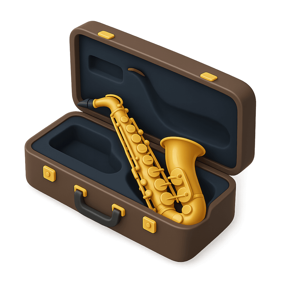 A brass wind instrument known for its rich, expressive sound, stored securely in a protective carrying case. Commonly used in jazz, classical, and popular music performances.