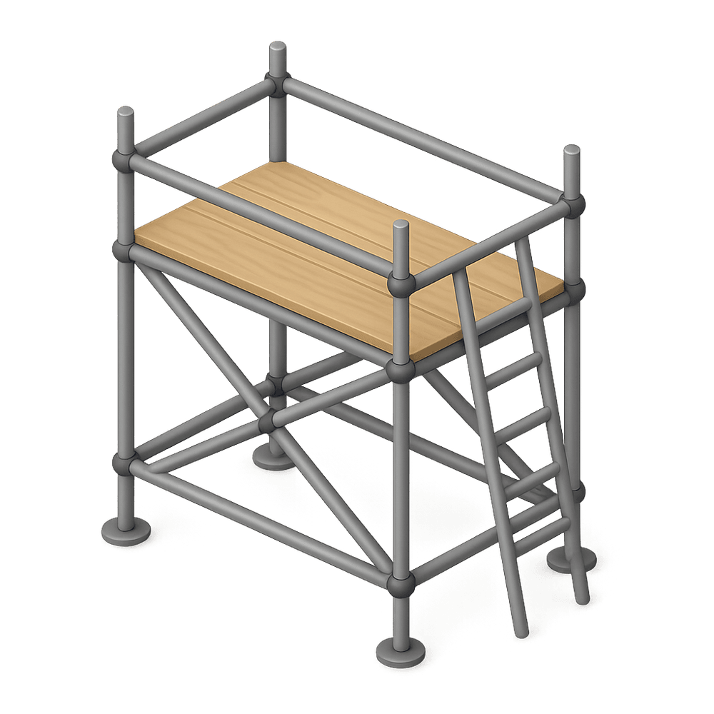 Scaffolding is a temporary structure used to support workers and materials during the construction, maintenance, or repair of buildings and other large structures. It provides safe access to high or hard-to-reach areas.