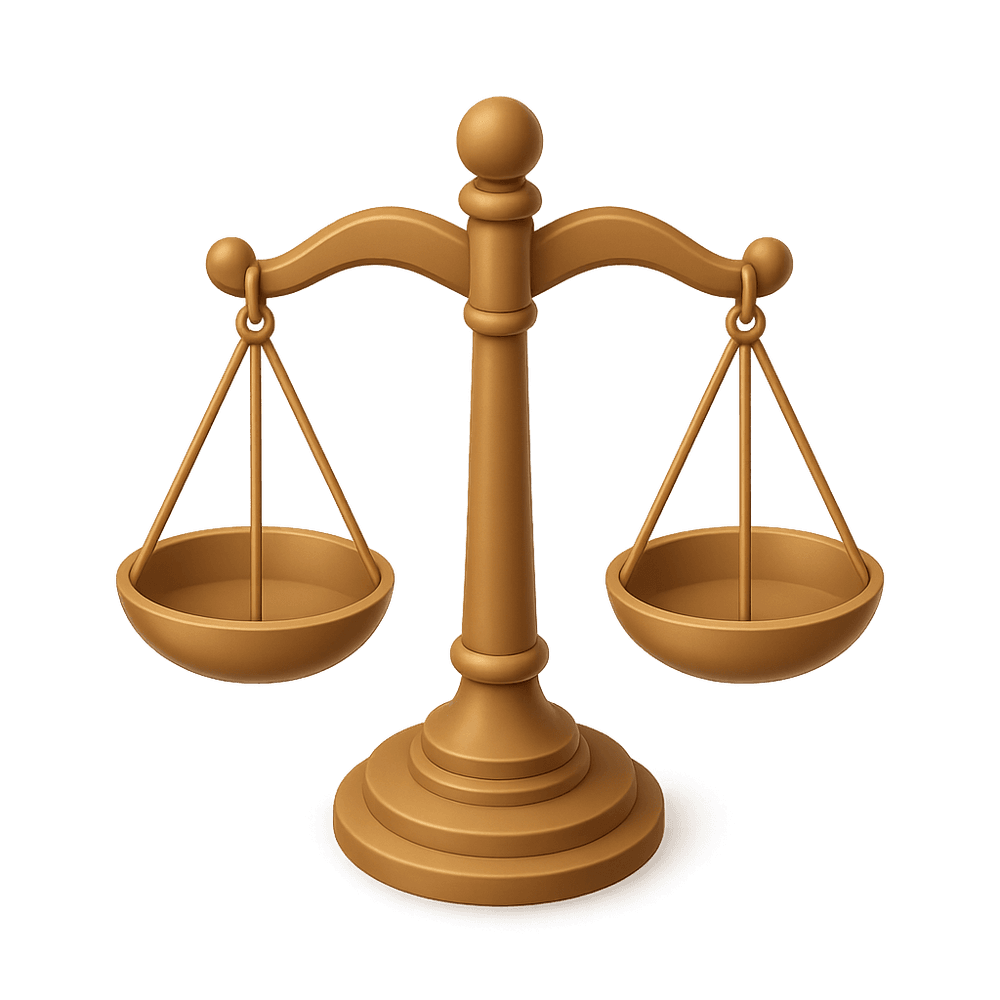 A classic symbol representing fairness, impartiality, and the weighing of evidence, often used in legal and judicial contexts. The Scales of Justice are commonly seen in courthouses and legal documents, symbolizing the balance between law and equity.