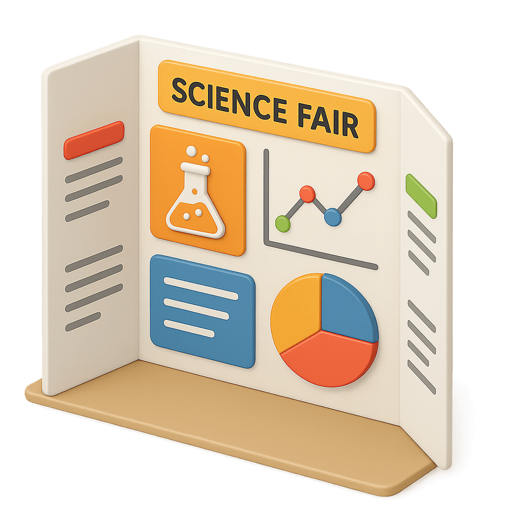 A tri-fold display board used by students to present scientific experiments, research, or projects at science fairs. It provides a structured way to showcase hypotheses, methods, results, and conclusions.