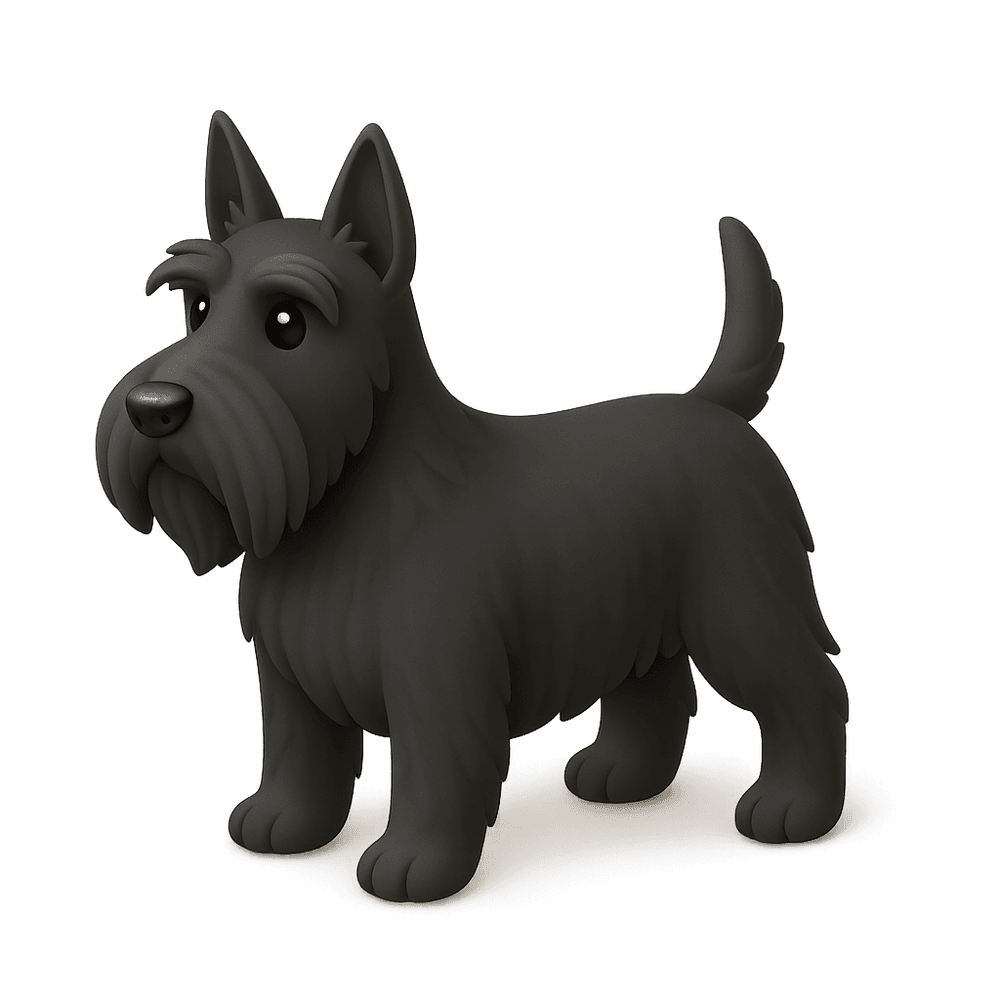 The Scottish Terrier is a small, sturdy dog breed known for its distinctive wiry coat, pointed ears, and dignified personality. Originally bred in Scotland for hunting vermin, this loyal and spirited companion is recognized for its independence and strong character.