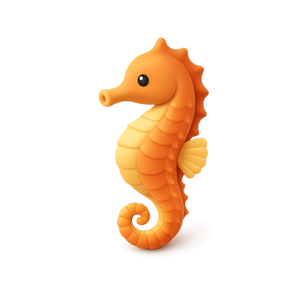 A small marine fish known for its horse-like head and curled tail. Sea horses are unique among fish for their upright swimming posture and the male's role in carrying eggs. They inhabit shallow coastal waters and are often found clinging to seaweed or coral.