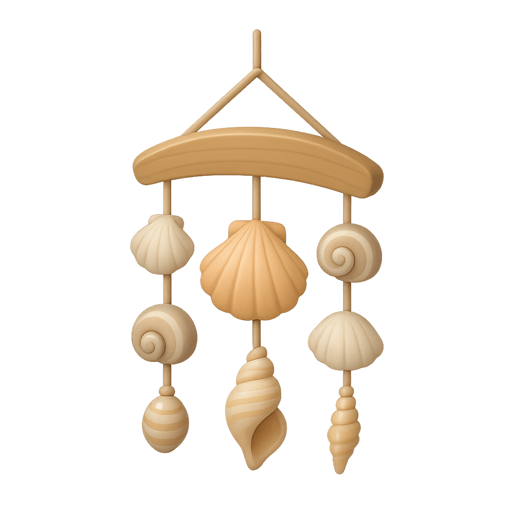 A decorative wind chime crafted from seashells, often handmade as a creative hobby project. It produces soothing sounds when moved by the breeze and adds a coastal touch to home or garden decor.