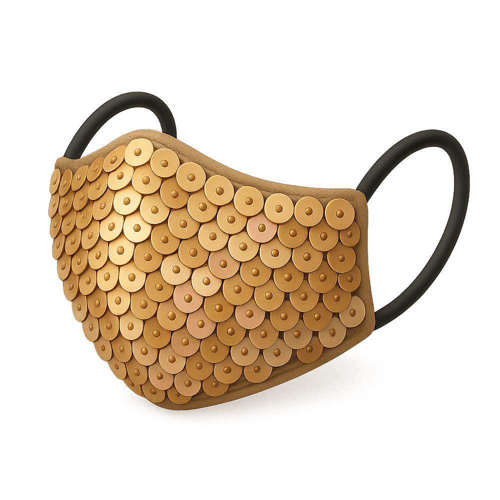 A fashionable face mask adorned with sequins, designed to add sparkle and style while providing coverage. Popular for events, parties, and everyday wear as a statement accessory.