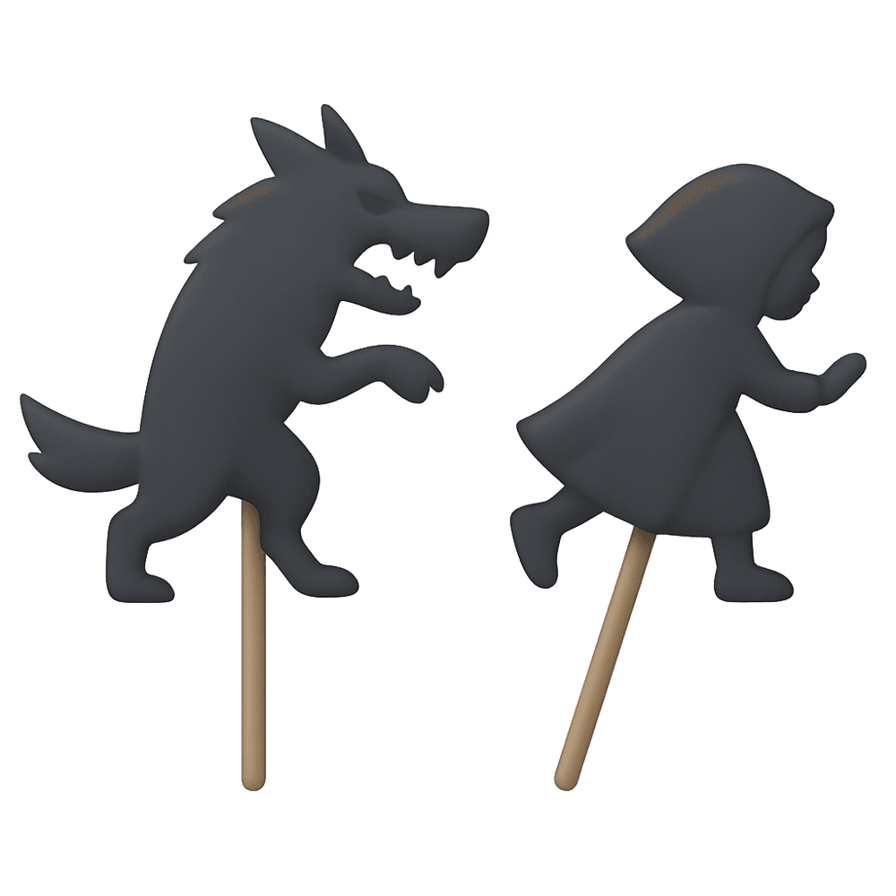 Shadow puppets are figures made from cut-out shapes, often of paper or leather, that are held between a light source and a screen to create moving silhouettes. This traditional form of storytelling and entertainment is popular in many cultures and is used for both educational and recreational performances.