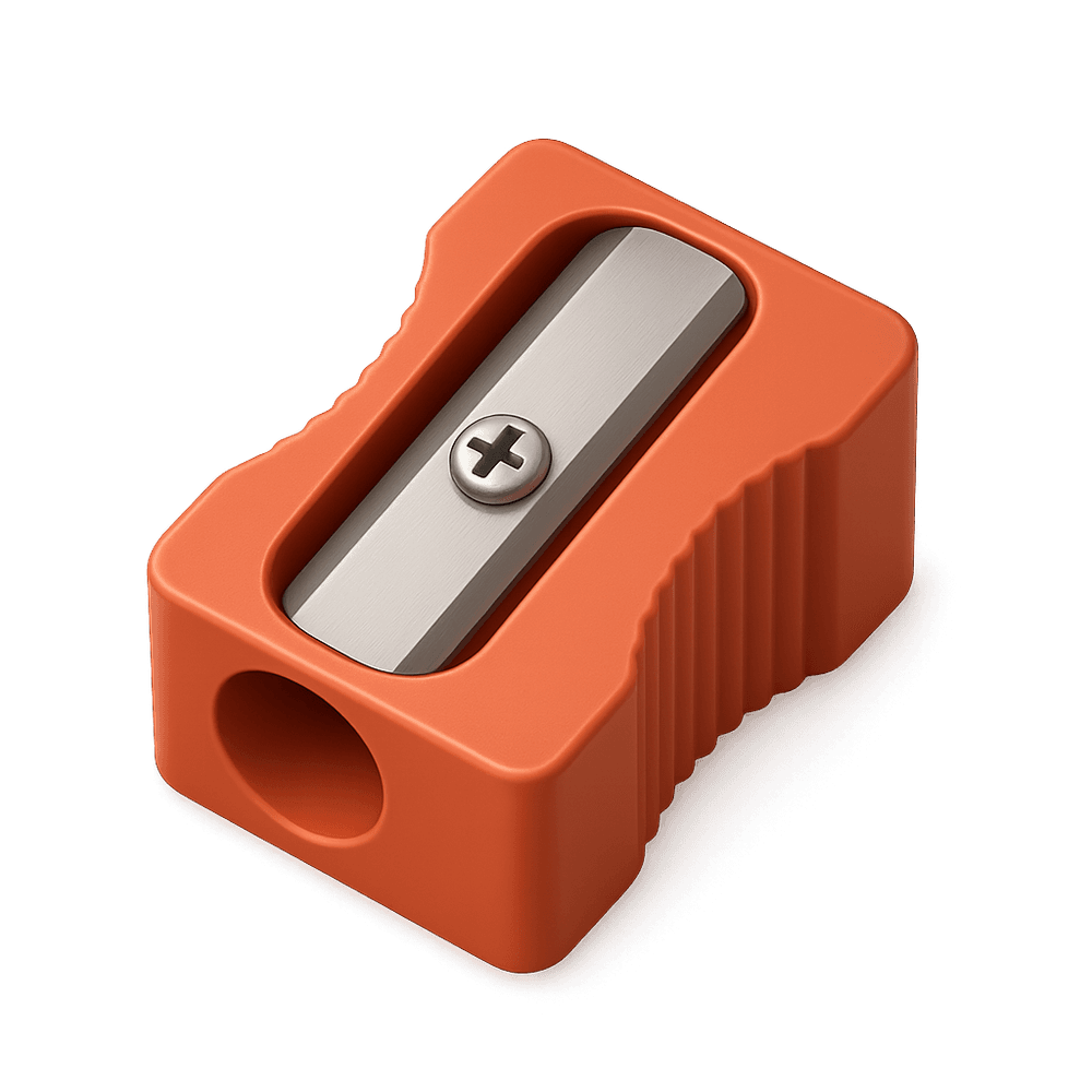 A sharpener is a small tool used to restore the fine edge of pencils or other writing instruments, making them suitable for precise writing or drawing. Commonly found in schools, offices, and homes, it is an essential everyday item for maintaining writing tools.