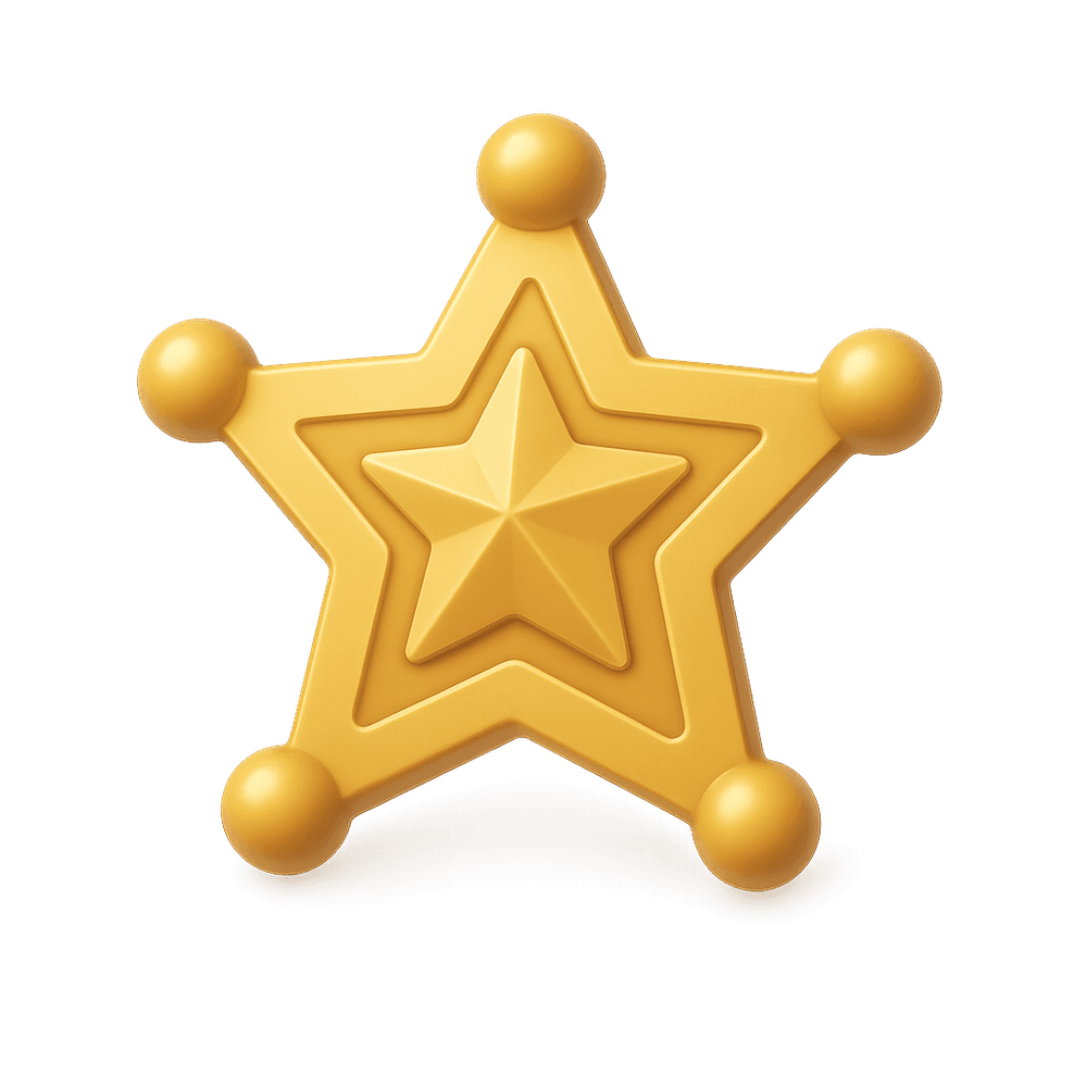 A Sheriff Star is a metal badge shaped like a star, traditionally worn by law enforcement officers in the American West. It symbolizes authority, law, and order, and is often associated with the role of a sheriff in maintaining justice within a community.