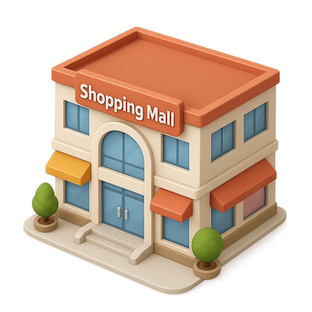 A shopping mall is a large indoor complex featuring a variety of retail stores, restaurants, and entertainment venues, designed for shopping, dining, and socializing.