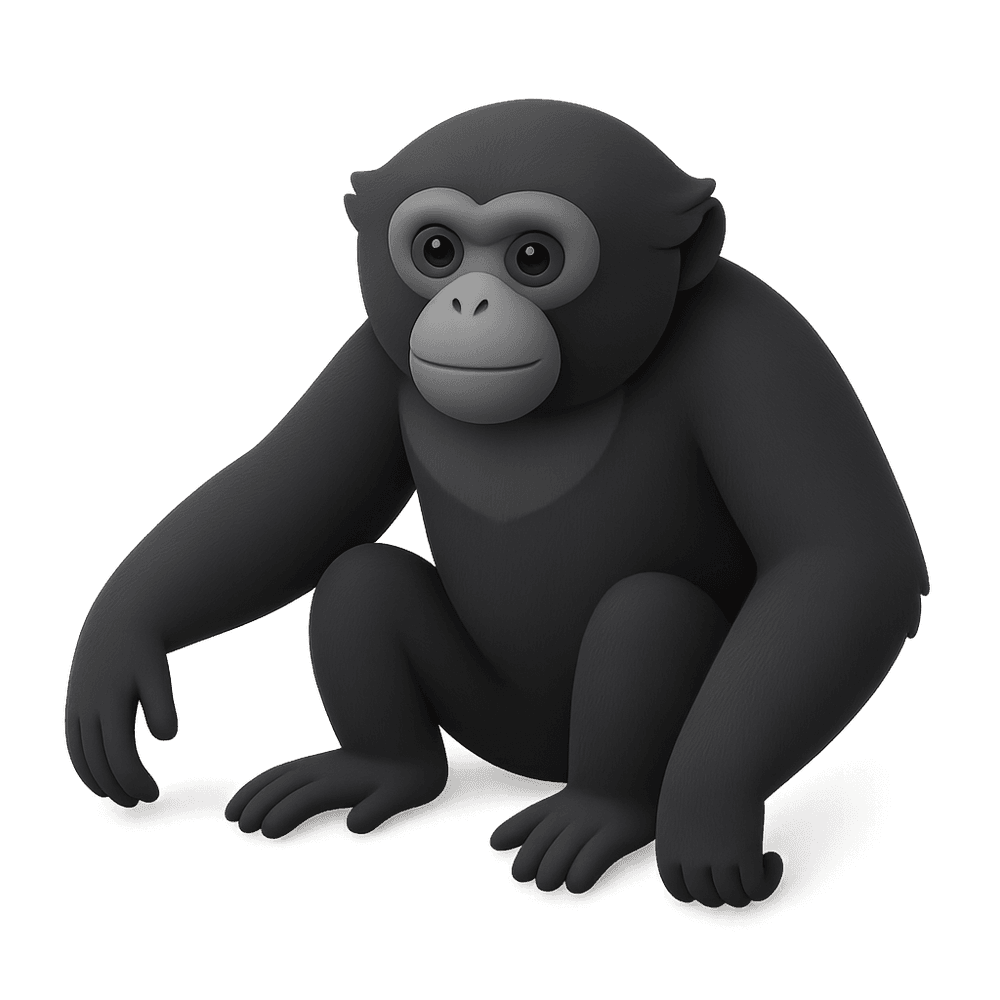 The Siamang is a large, black-furred gibbon native to the forests of Southeast Asia. Known for its loud, resonant calls and strong social bonds, it is an arboreal primate that lives in family groups and is recognized for its distinctive throat sac, which amplifies its vocalizations.