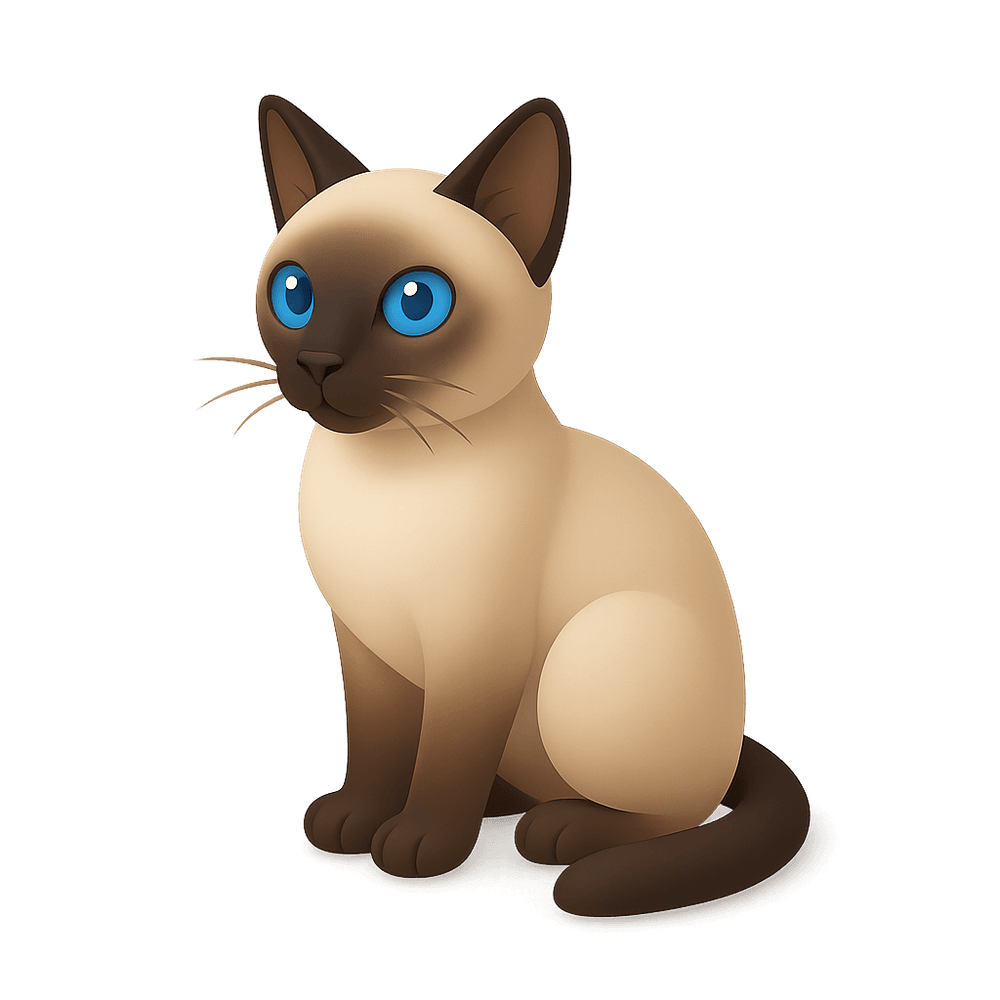 The Siamese is a popular breed of domestic cat known for its striking blue eyes, short coat, and distinctive color points on the ears, face, paws, and tail. Renowned for their vocal and social nature, Siamese cats are affectionate companions and are easily recognizable by their elegant, slender bodies.