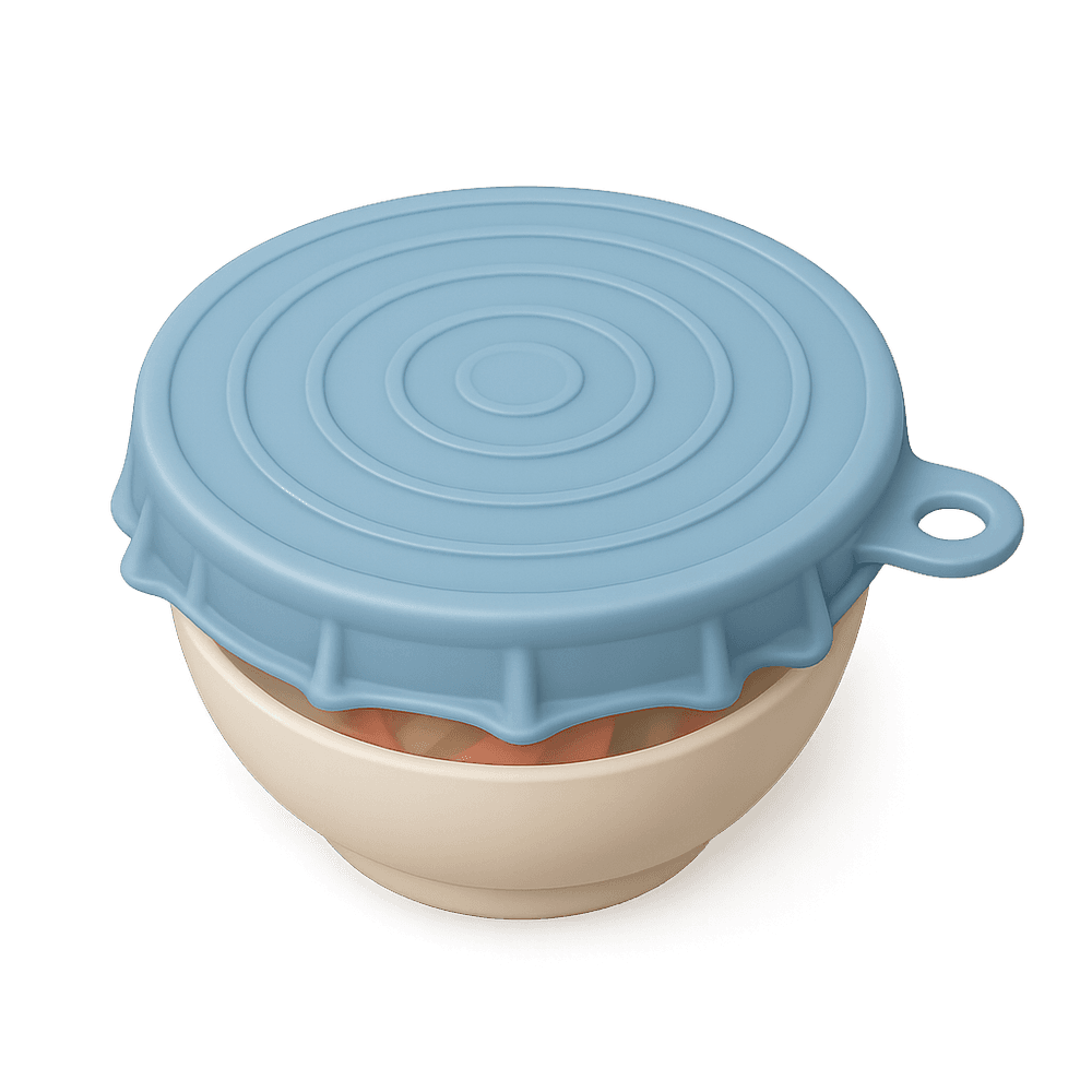 A reusable, stretchable silicone food cover designed to seal bowls, plates, and containers, keeping food fresh and reducing the need for single-use plastic wrap. Flexible and eco-friendly, it fits various shapes and sizes.