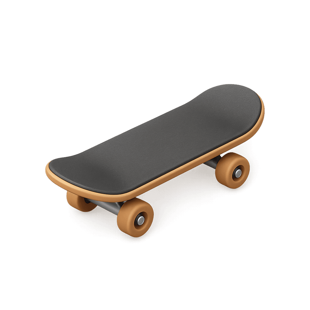A skateboard is a small, flat board with four wheels, designed for riding and performing tricks. It is propelled by pushing off the ground with one foot while the other foot remains on the board. Skateboards are popular for personal transport and recreational use, especially in urban environments.