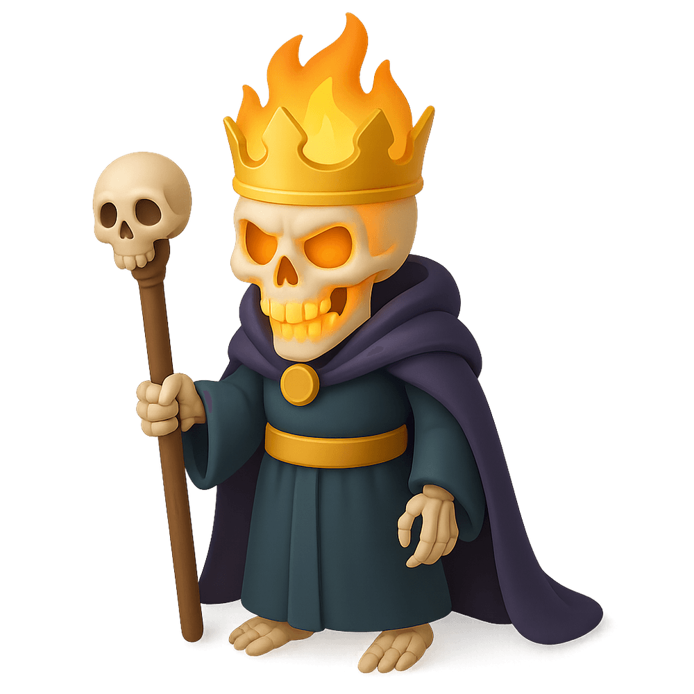 The Skeleton King is a powerful undead monarch from the realm of fantasy, often depicted as a skeletal ruler clad in ancient armor and wielding dark magic. He commands legions of the undead and is a formidable antagonist in many tales of imagination and adventure.