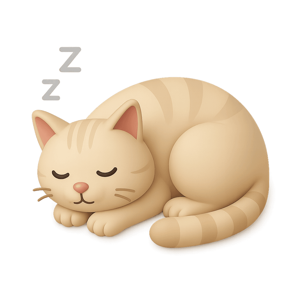 A domestic cat curled up and resting peacefully, often seen napping in cozy spots. Known for their love of sleep and relaxed demeanor.