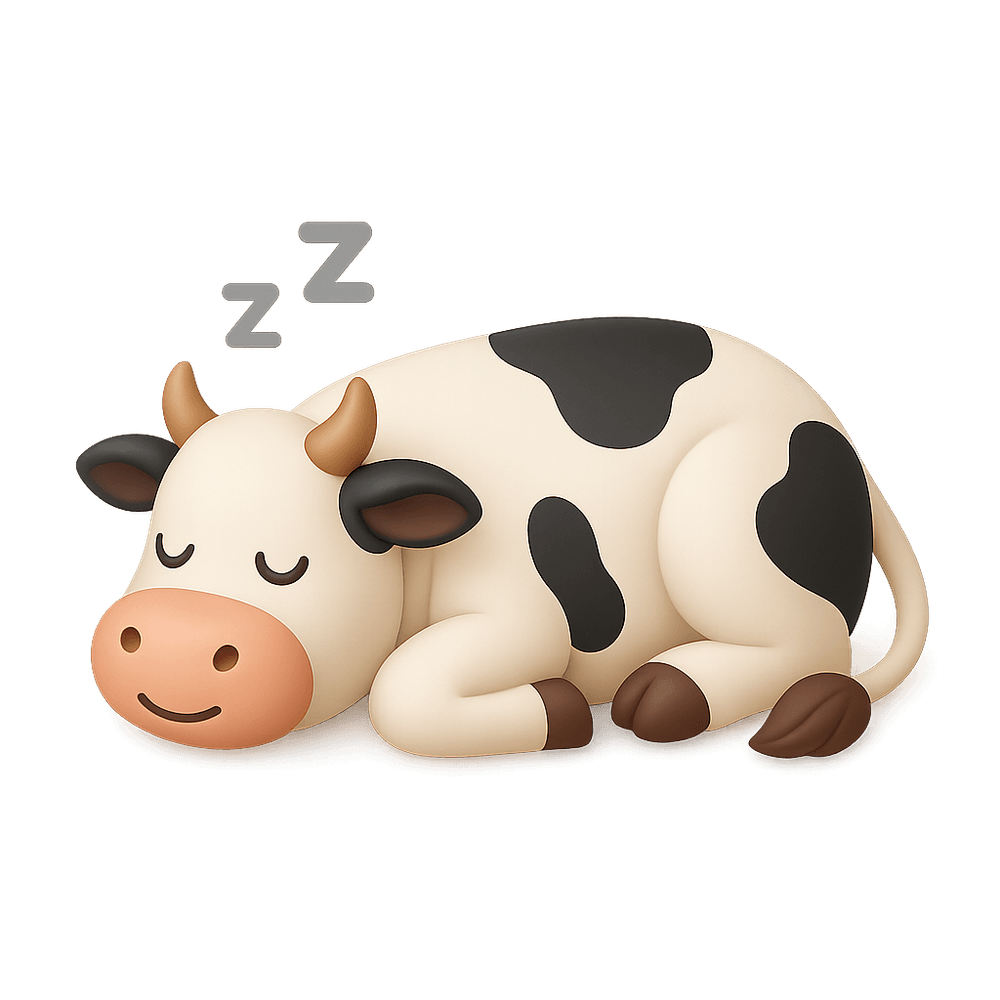 A sleeping cow is a domesticated mammal known for its gentle nature, often found resting in fields or barns. Cows are important farm animals, valued for their milk, meat, and companionship. When sleeping, they lie down to rest and ruminate, contributing to their overall health and well-being.