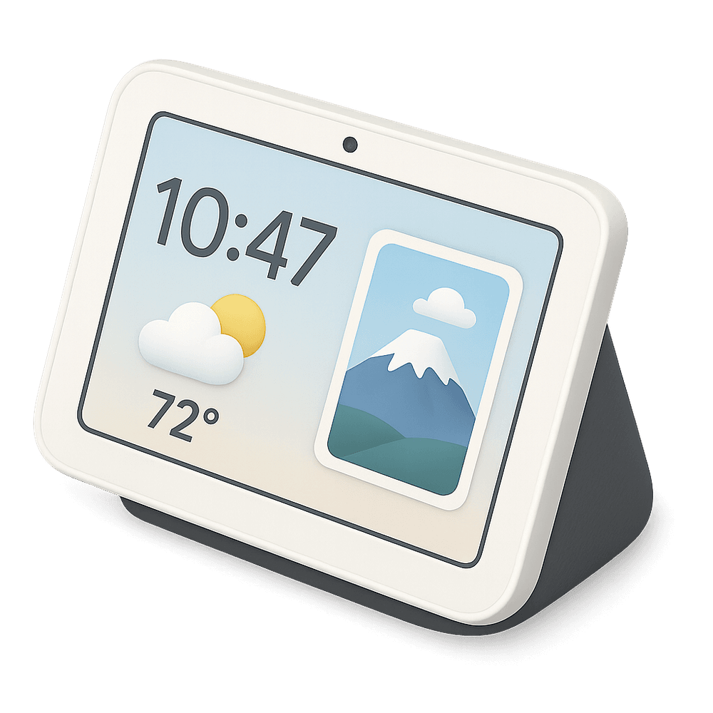 A smart display is an interactive device with a touchscreen and voice assistant integration, designed to provide information, entertainment, and smart home control. It can show videos, display photos, manage schedules, and control connected devices using voice or touch commands.