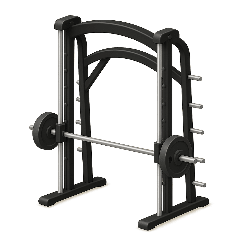 A Smith Machine is a piece of strength training equipment featuring a barbell fixed within steel rails, allowing for vertical movement. It is commonly used in gyms for safe, guided weightlifting exercises such as squats and bench presses, supporting muscle building and fitness routines.
