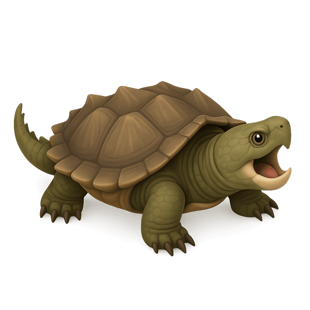 The snapping turtle is a large, freshwater reptile known for its powerful beak-like jaws and aggressive defense. Native to North America, it inhabits ponds, lakes, and slow-moving rivers, and is recognized for its rugged shell and prehistoric appearance.