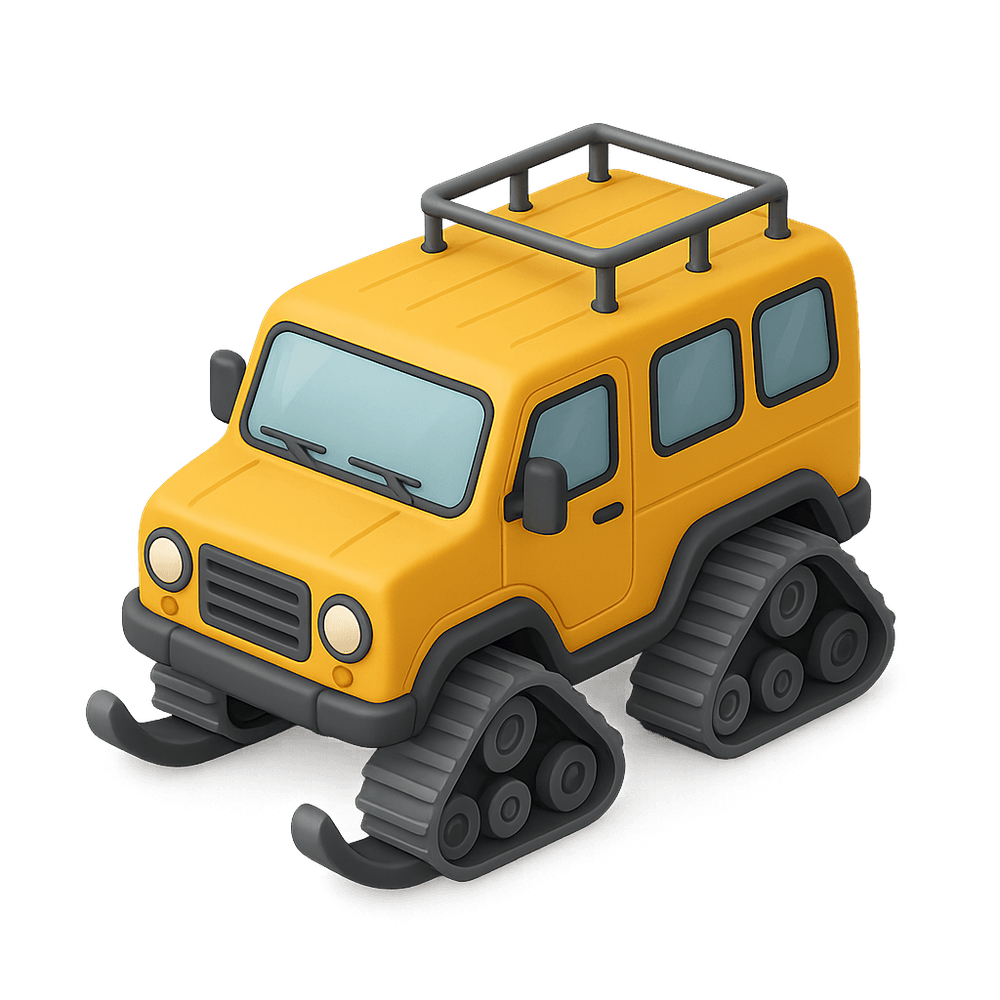 A snow coach is a specialized vehicle designed to transport passengers over snow-covered terrain. Equipped with large tires or tracks, it is commonly used for tours, expeditions, and transport in snowy environments where regular vehicles cannot operate.