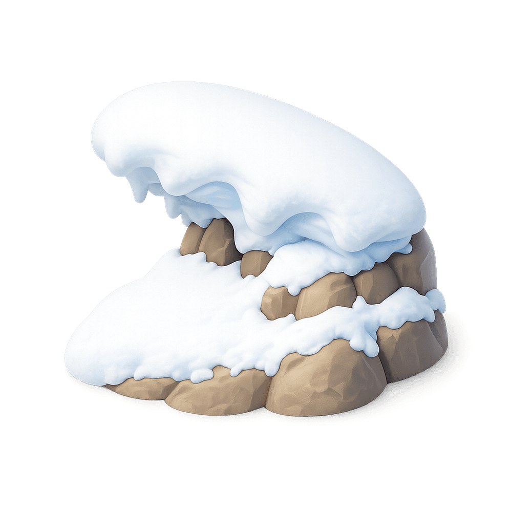 A snow cornice is an overhanging mass of wind-blown snow, typically found on the edge of a ridge or mountain crest. These formations are created by strong winds and can pose significant avalanche risks to climbers and skiers.