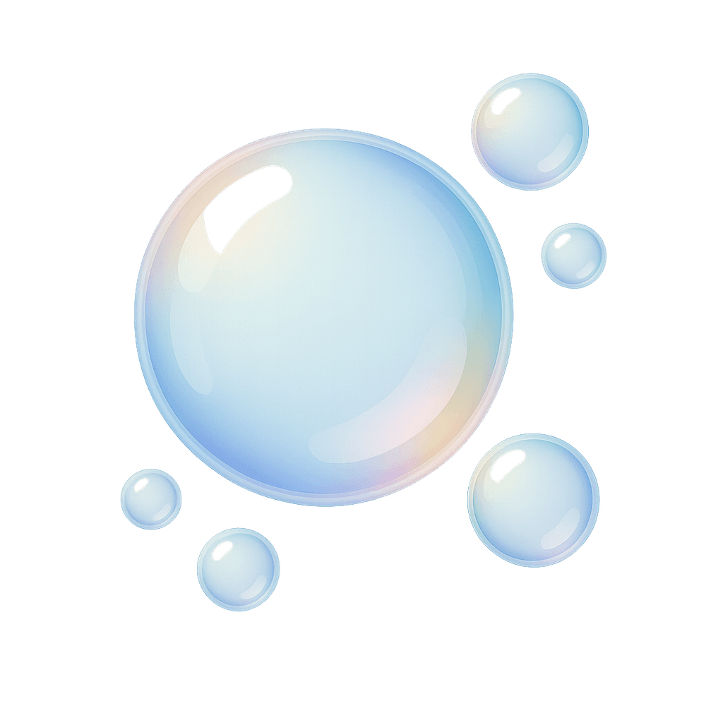 Soap bubbles are delicate, floating spheres formed from a thin film of soapy water. They are often created for play, entertainment, or decoration, and are known for their iridescent colors and short-lived beauty.
