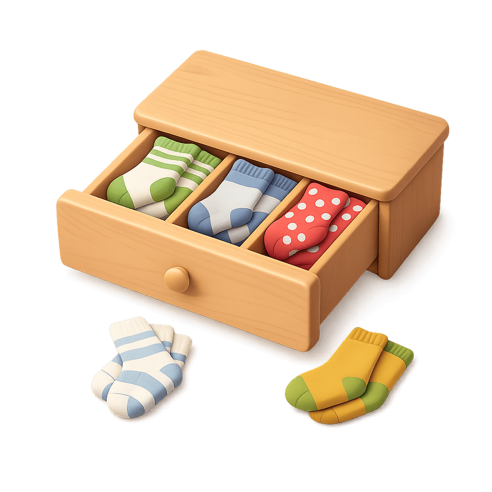 A sock drawer is a compartment, usually within a dresser or wardrobe, specifically used for storing and organizing socks. It helps keep pairs together and makes it easy to find the right socks for any occasion.